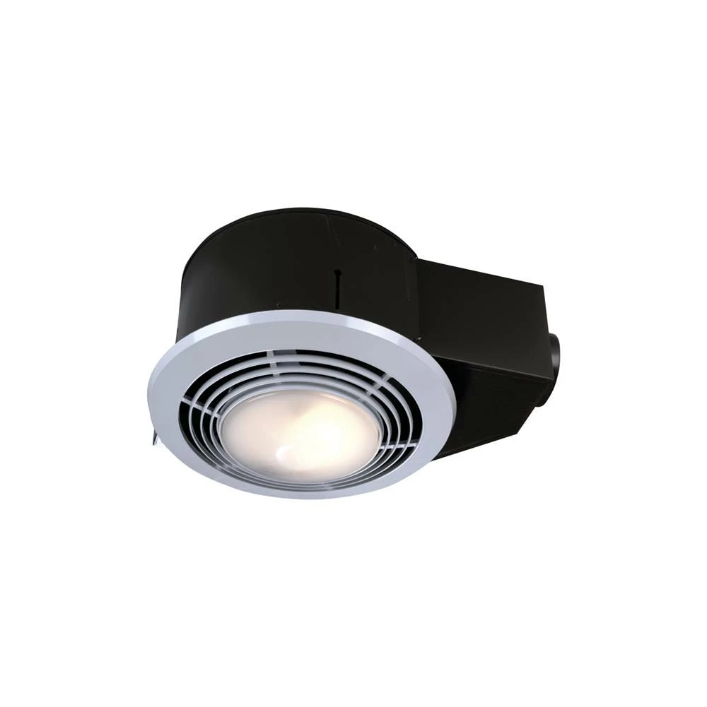Use the NuTone® 110 CFM White Exhaust Fan with Light and Heater to help prevent mildew in rooms up to 100 sq. ft. Use a 100-Watt light bulb and a 7-Watt bulb for primary and nighttime lighting (bulbs not included). The motor operates at a sound level of 4.0 sones.