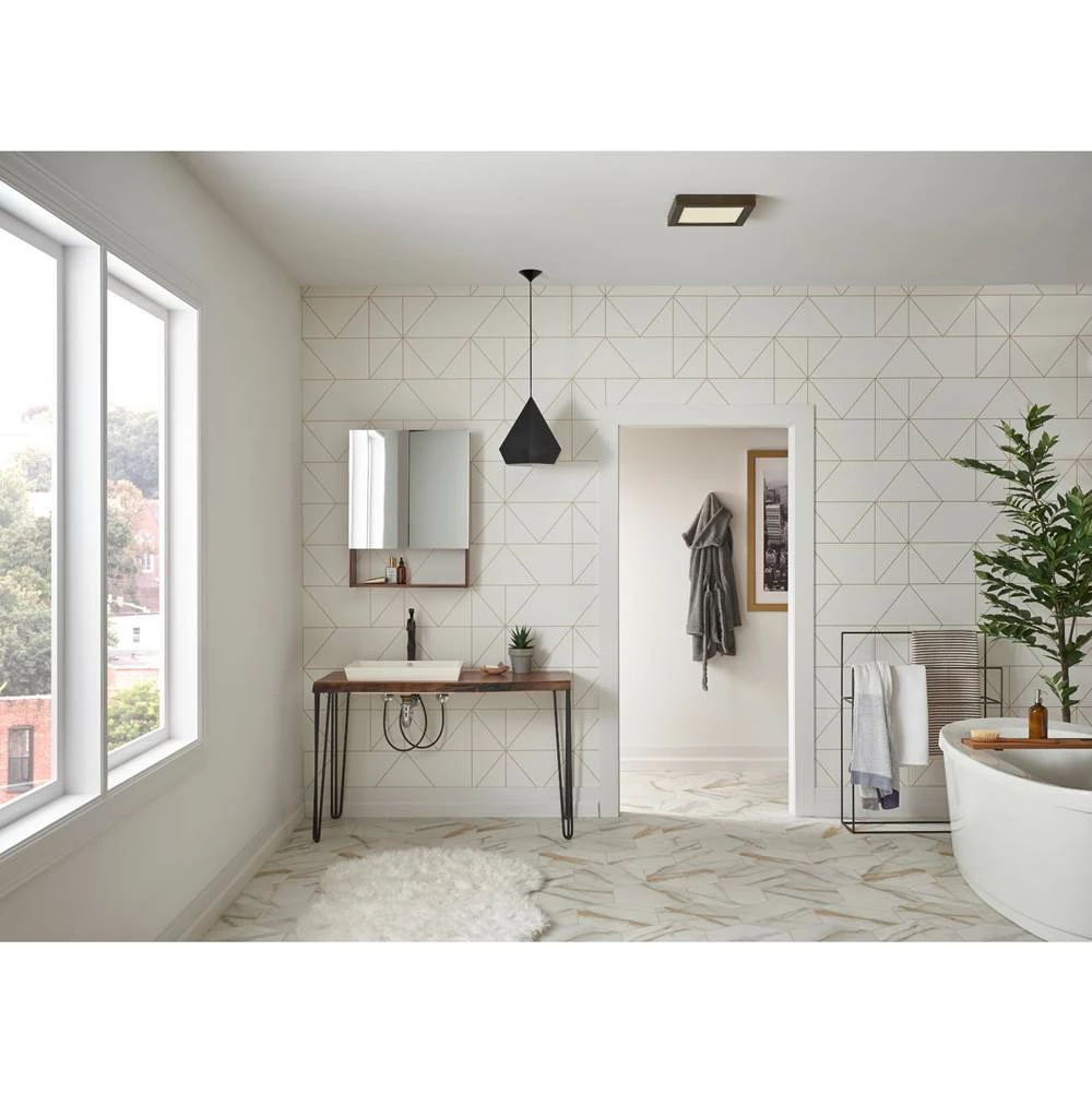 Broan® Roomside Series 110 CFM, 1.5 Sones Decorative Exhaust Fan with Square Flat Panel LED Light offers White, Brushed Bronze and Brushed Nickel Trim Kits to allow you to upgrade or match the style of your bathroom or powder room. The Low-Profile LED panels are not only bright but also long-lasting for illumination where and when you need it. Powerfully efficient ventilation works quietly to keep your space free from odor and humidity in a modern, elegant design. With Roomside installation, no attic access is required, providing you with a faster and easier installation.
