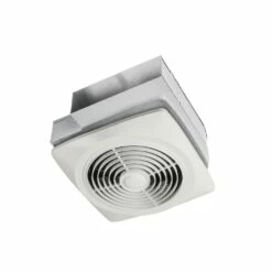 The Broan® 160 CFM Side-Discharge Exhaust Fan can be mounted on either the ceiling or the wall to eliminate humidity and smoke from recreation rooms and workshops or to help remove cooking odors from kitchens. The fan is 8 in. in diameter and features a low-profile white grille that can be painted to match your decor. A built-in damper helps prevent back drafts.
