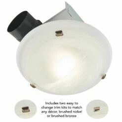 Upgrade the style of your bathroom or powder room with an elegant and modern decorative ventilation fan. With the interchangeable trim kit, select a style that is suitable for the dƩcor of the room. This decorative exhaust fan provides powerfully efficient ventilation and works quietly to keep your space free from odor and humidity.