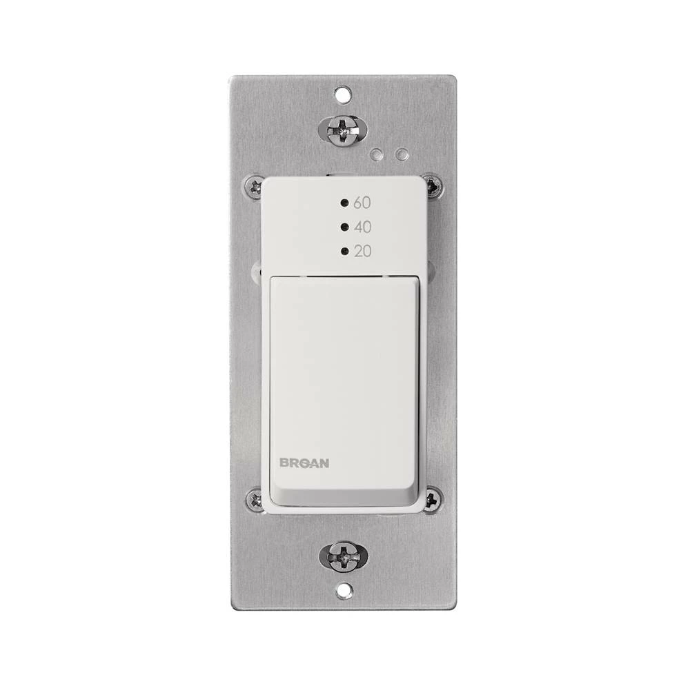 With the Broan-NuTone® Countdown Timer Wall Control Switch for ventilation fans, you have the power to control your bathroom fan at the push of a button. The adjustable timer can be set to 20, 40 or 60 minutes and can also be set to run non-stop, which is perfect for meeting the codes and regulations that require continuous ventilation. With LED lights and a sleek, modern design, this countdown timer looks great in any bathroom setting and matches virtually all décors. This versatile wall control is the perfect complement to the multitude of Broan and NuTone® fans currently in the marketplace.