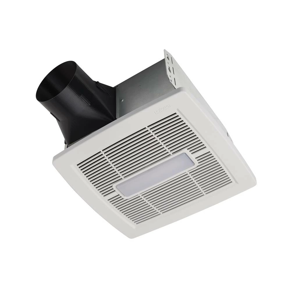 Broan® AE50110DCSL Flex DC™ Series 80 CFM Humidity Sensing Exhaust Bath Fan, ENERGY STAR® offers easy, room side installation, with “No Attic Access Required”. Ceiling mounted ventilation fan features foldable mounting ears and EZ Duct connector for easy installation. New duct damper technology provides a tighter seal, resulting in reduced warm and cold air backdrafts. The humidity sensing feature will automatically turn the fan on when a preset level has been reached, thus allowing for proper ventilation throughout the room. This energy efficient fan operates at a selectable CFM range of 50-80-110 at a quiet operation of
