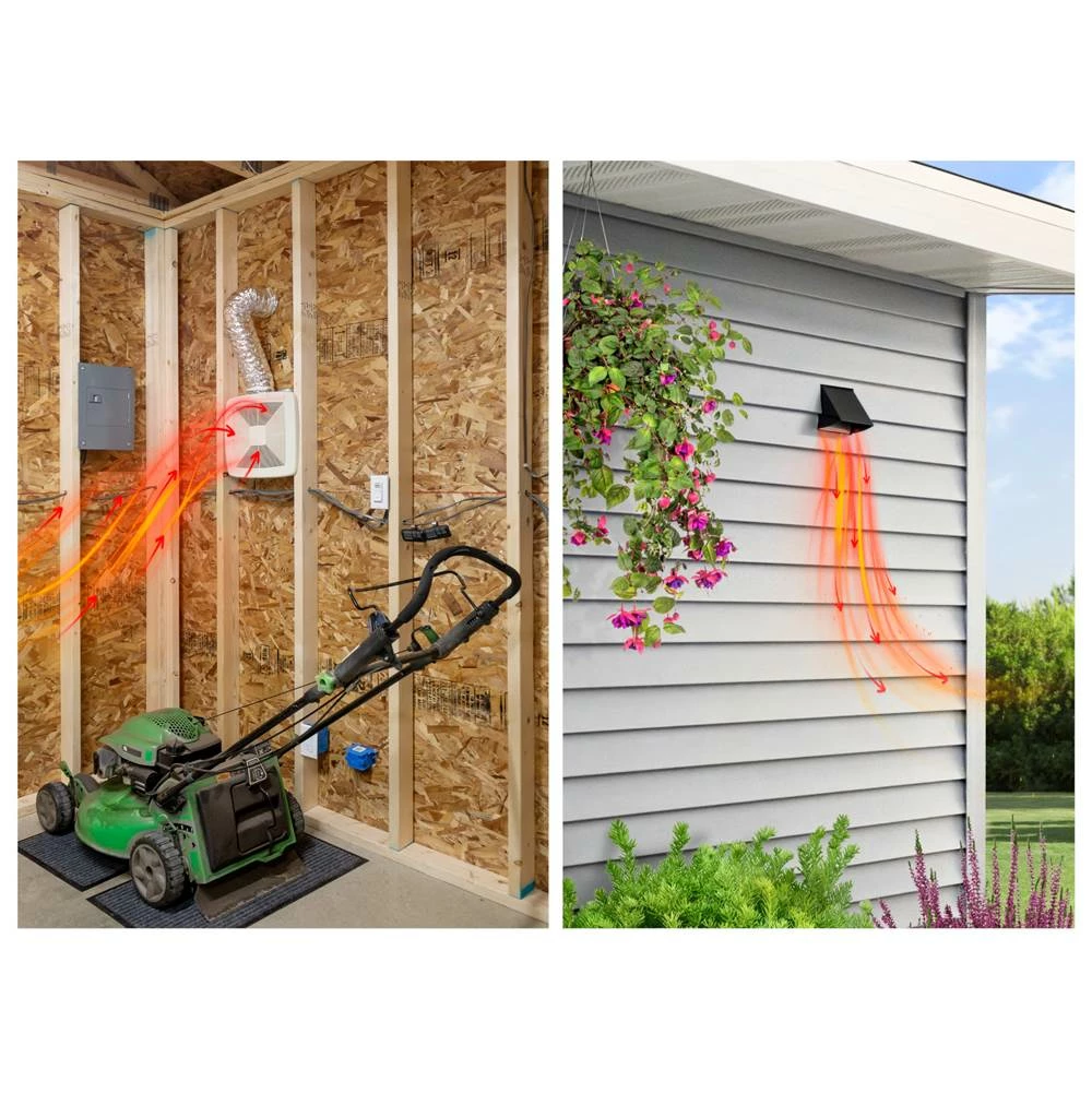 - Use for spot ventilation in a larger garage near a work bench, car, garbage can, lawn mower, or other spaces within the garage
