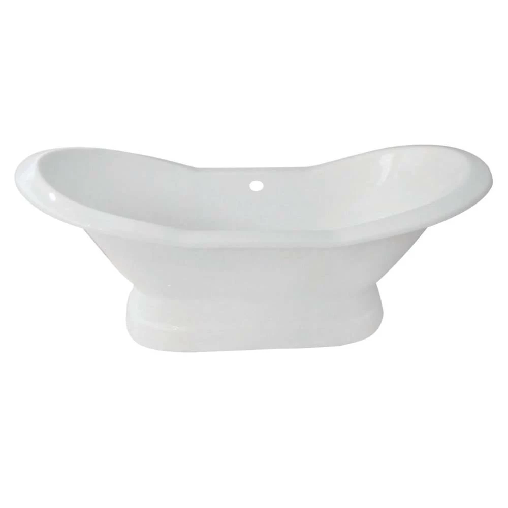 Incorporate the regal beauty of a Kingston Brass pedestal tub for years and years of luxury baths suitable for royalty. Pedestal tubs are generally categorized as the contemporary descendant of the classic clawfoot tub. However, unlike the clawfoot tub, pedestal tubs rely on a solid base ring bordering the bottom perimeter to support and raise it off the floor, giving it a one-of-a-kind personality. The Aqua Eden 72-inch cast iron Double Slipper Pedestal Tub No Faucet Drillings will wholly beautify your home for years to come thanks to its durable and heavy cast iron construction. This bathtub is enameled in glossy white for a classic look, exceptional durability, and easy care and maintenance for years to come.