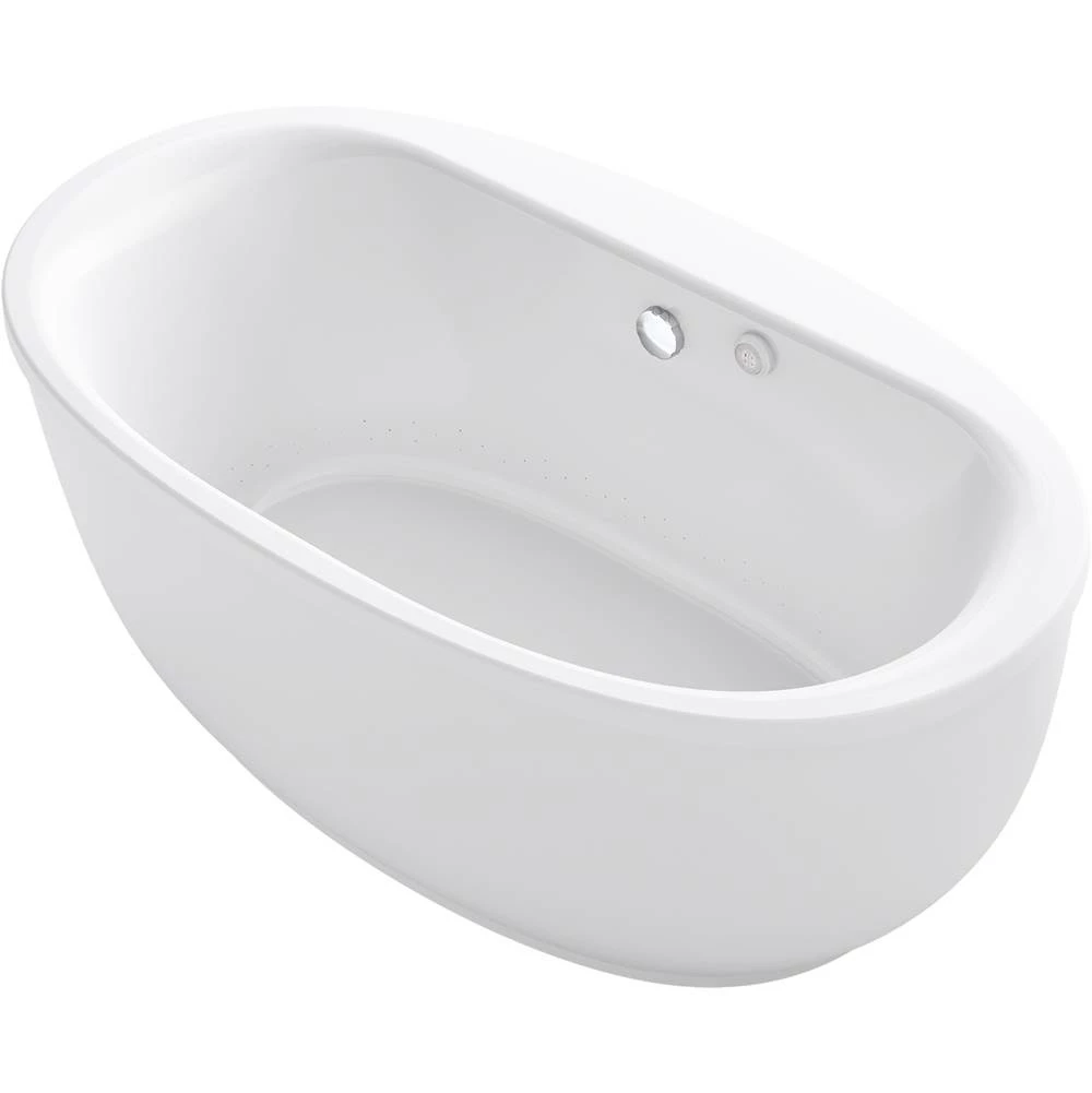 Completely surround your body in a soothing cushion of heated massaging bubbles in this Sunstruck freestanding air bath. With airjets pushing humidified air through the water, this bath delivers a blissfully warm, invigorating full-body massage experience, while the heated surface warms your back, shoulders and neck. The oval, ergonomic design supports your body for a deep, relaxing soak. With its gracefully shaped lines and fluted shroud, this versatile bath complements a wide range of bathroom styles and offers easy three-step installation.