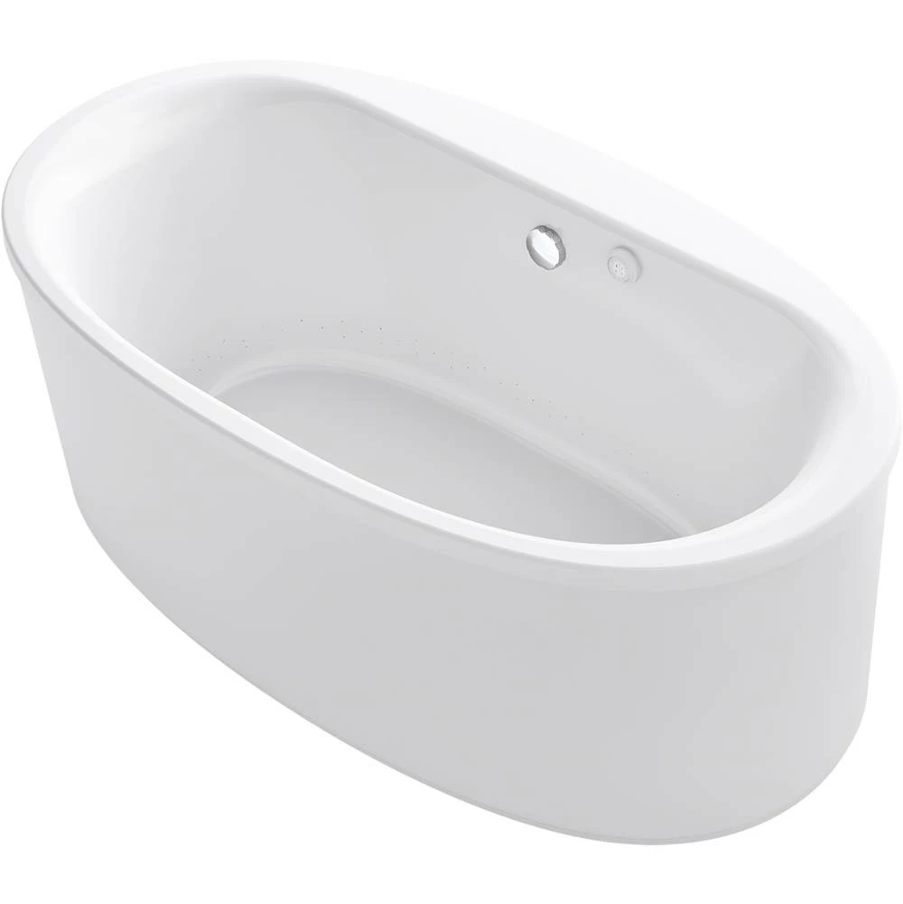 Completely surround your body in a soothing cushion of heated massaging bubbles in this Sunstruck freestanding air bath. With airjets pushing humidified air through the water, this bath delivers a blissfully warm, invigorating full-body massage experience. The oval, ergonomic design supports your body for a deep, relaxing soak. With its gracefully shaped lines and straight shroud, this versatile bath complements a wide range of bathroom styles and offers easy three-step installation.
