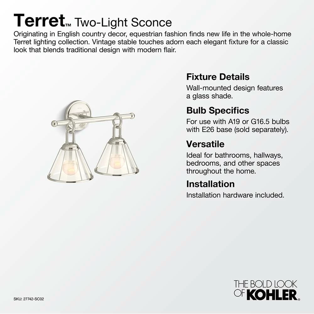 - Requires two bulbs with medium (E26) base; type A or G bulb recommended (sold separately)