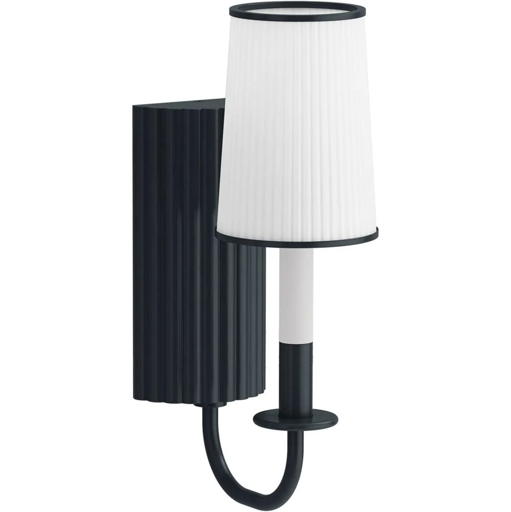 - Scalloped metal details are juxtaposed against a delicate matte ribbed glass shade for dramatic elegance