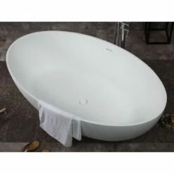 Alfi Trade 67” White Oval Solid Surface Smooth Resin Soaking Bathtub