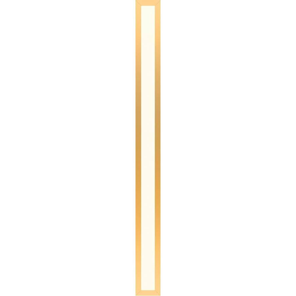 - Profiles 3-1/2” x 39-3/8” x 4-5/8” framed lighting in matte gold with 2700 kelvin temperature (warm light)