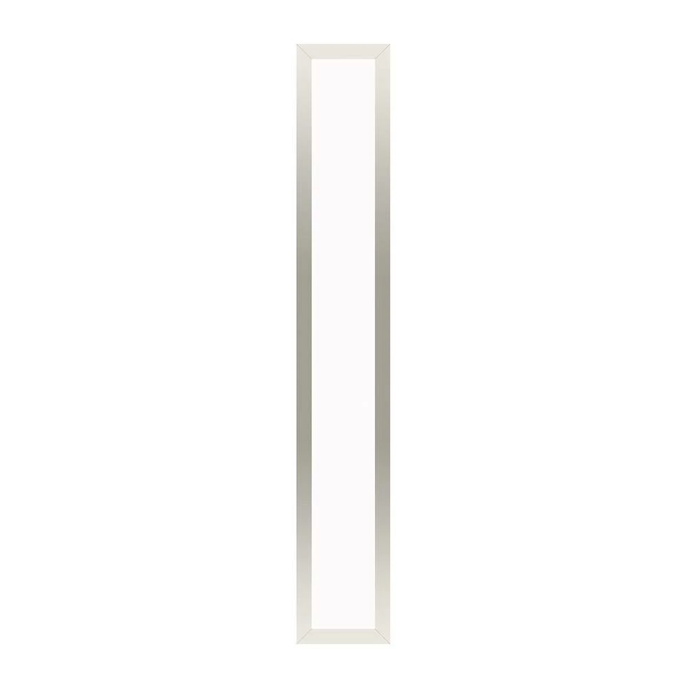 - Profiles 5” x 30” x 4-5/8” framed lighting in polished nickel with 4000 kelvin temperature (cool light)
