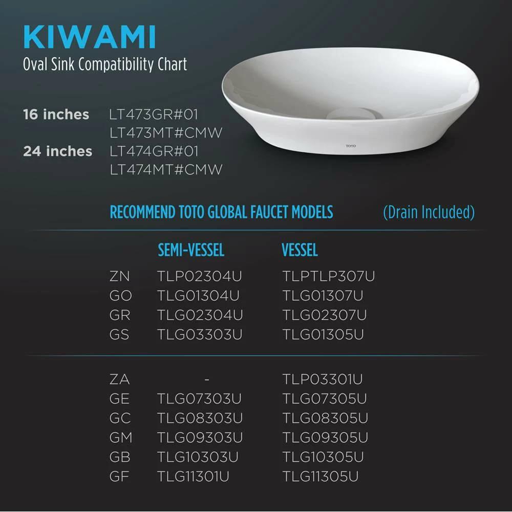 Upgrade your bathroom counter instantly with the TOTO® Kiwami® Oval Vessel Bathroom Sink. Designed with CEFIONTECT® technology, the Kiwami oval sink is a modern and elegant sink that incorporates beautiful thin edges. CEFIONTECT glaze keeps your sink cleaner longer by prohibiting mold and debris from adhering to the surface of the sink. Crafted with the extremely smooth and durable Linear Ceram material and completed with a beautiful CLEAN MATTE finish. For use with included grid drain assembly only. The Kiwami Vessel sink is ADA compliant. Includes drain, decorative drain cover, and installation template. Faucet sold separately. Recommend using faucet with maximum height of 8 inches.